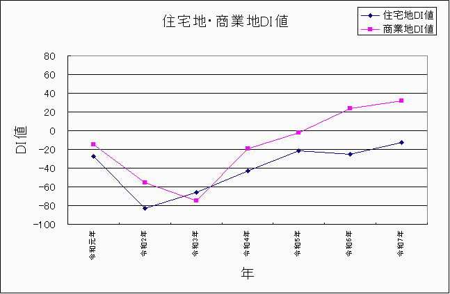 上記住宅地、商業地のDI値をグラフ化すると下記である。